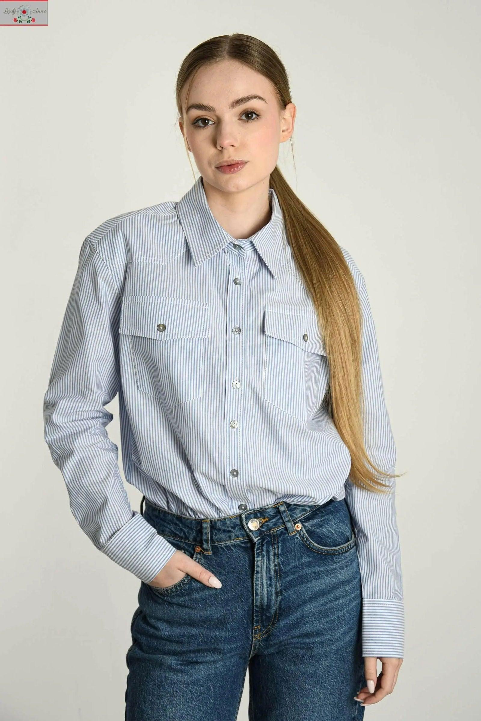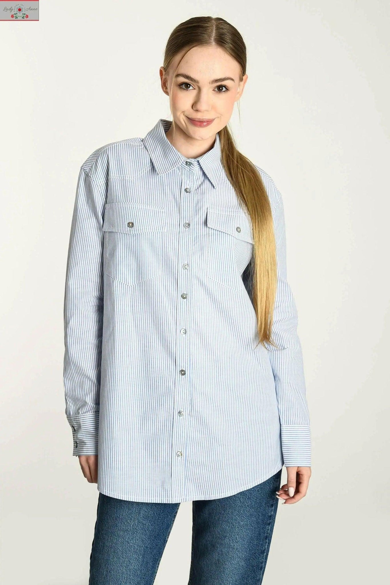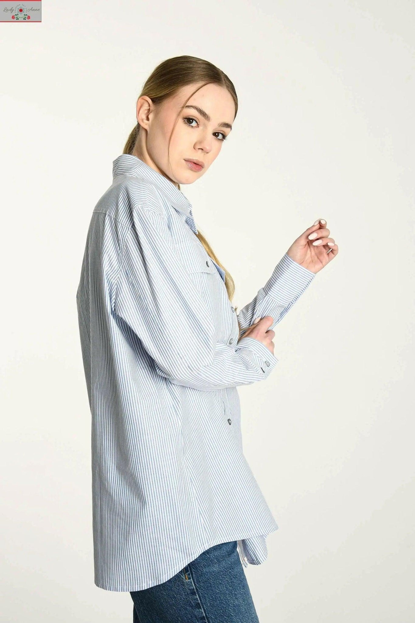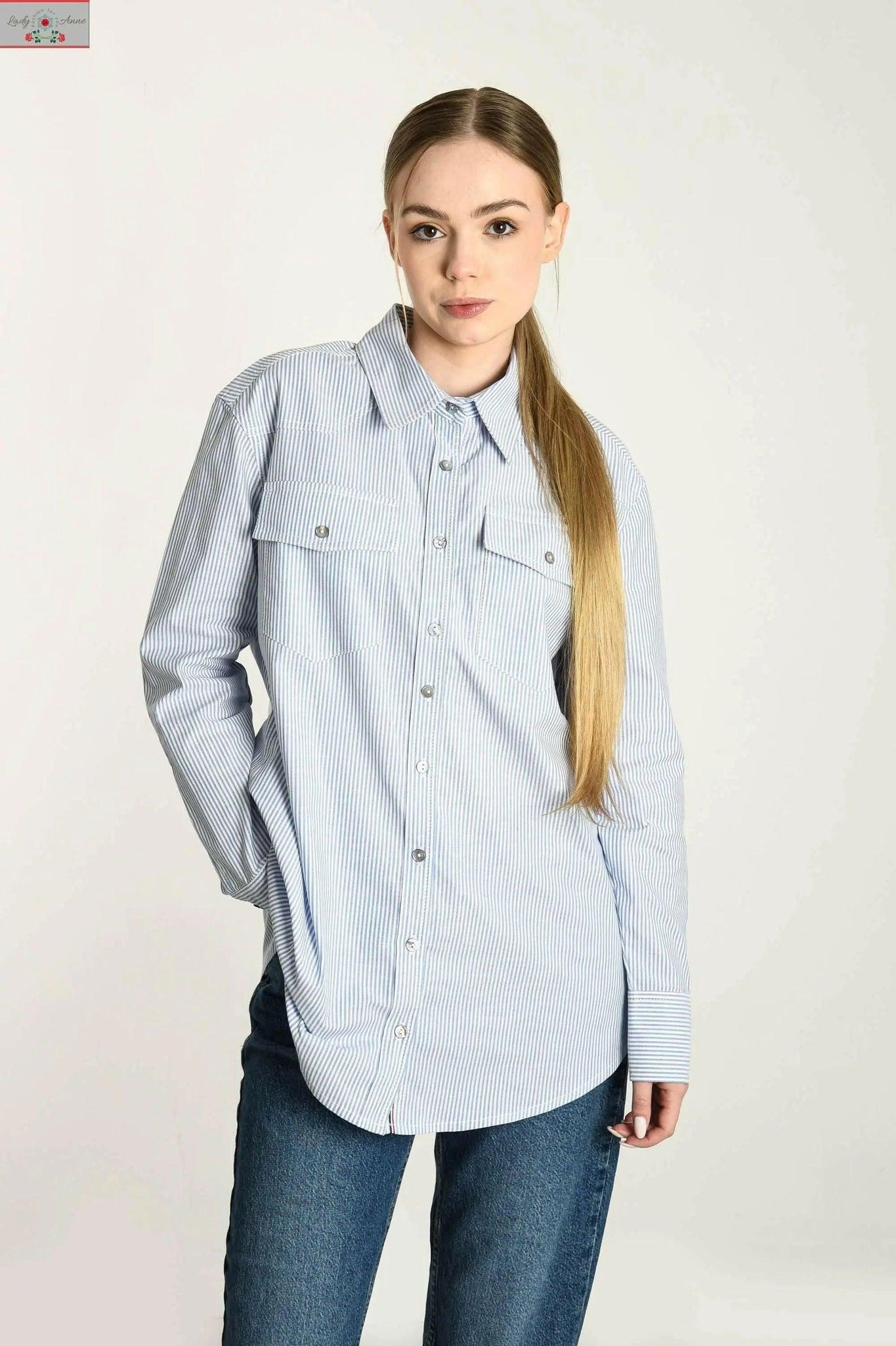 Ta elegancka koszula damska to połączenie wygody i stylu, które zapewnia nie tylko komfort, ale także elegancki wygląd. Jej oversizowy krój doskonale wpasuje się zarówno w eleganckie, jak i luźniejsze stylizacje, dzięki czemu zawsze będziesz prezentować się lekko i modnie, niezależnie od okazji. Wyjątkowy fason tej koszuli pozwala cieszyć się nie tylko wygodą, ale także oryginalnym designem, który przyciągnie uwagę każdej miłośniczki unikatowej mody.
